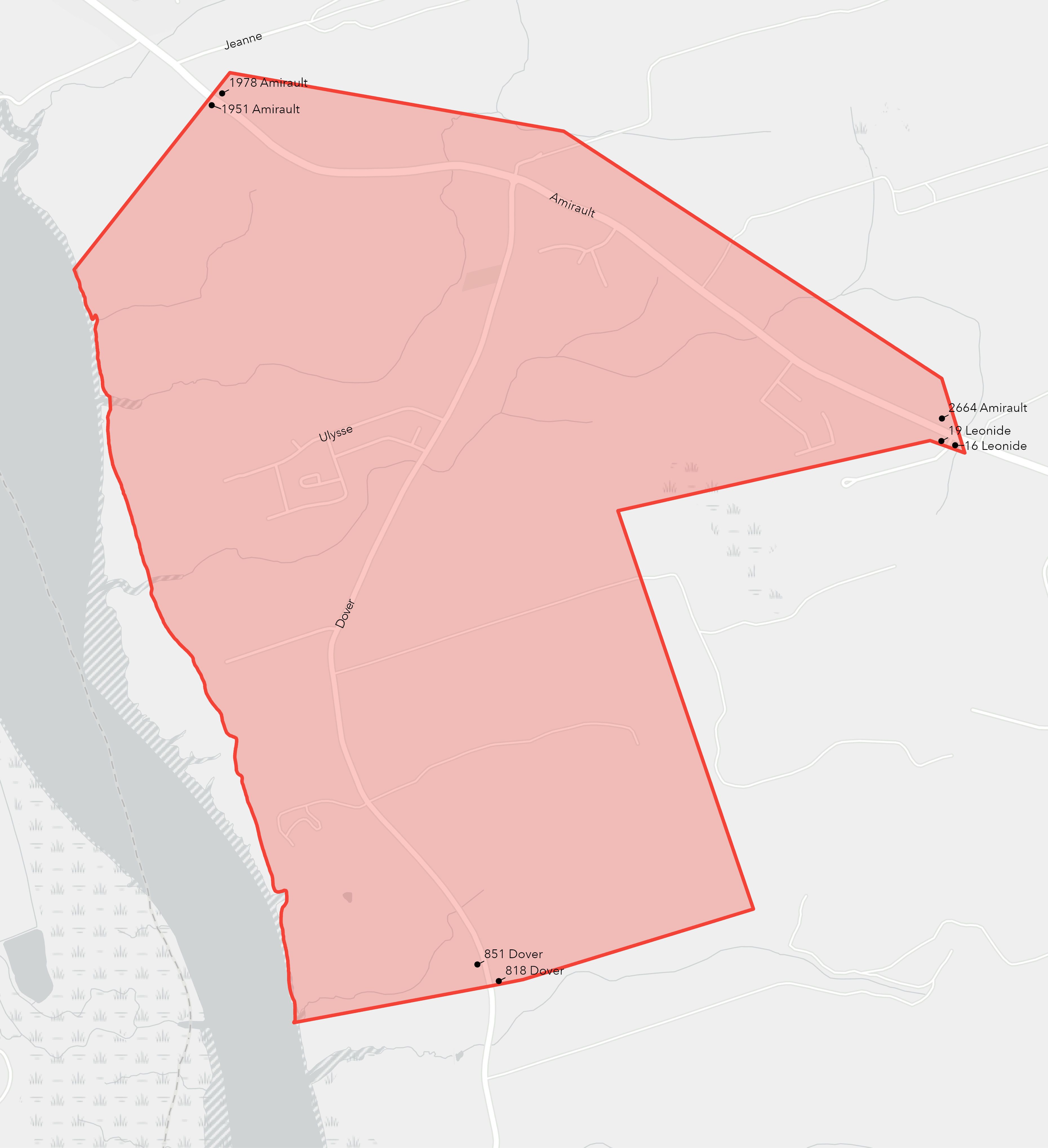 La zone touchée par l’avis de bouillir l’eau est celle en rouge dans la carte suivante.